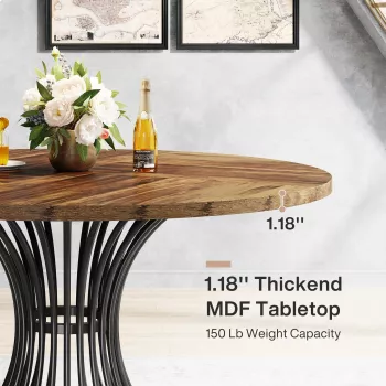 47-Inch Round Farmhouse Dining Table for 4-6 People